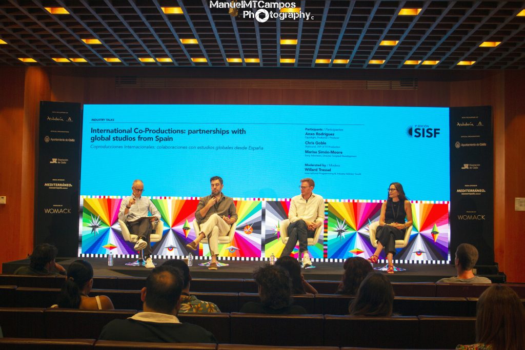 En la charla “Coproducciones internacionales: colaboraciones con estudios globales desde España”, Anxo Rodríguez, Chris Goble y Marisa Simon-Moore, con la moderación de Willard Tressel, analizaron el papel estratégico de las alianzas internacionales en el crecimiento del sector audiovisual español.