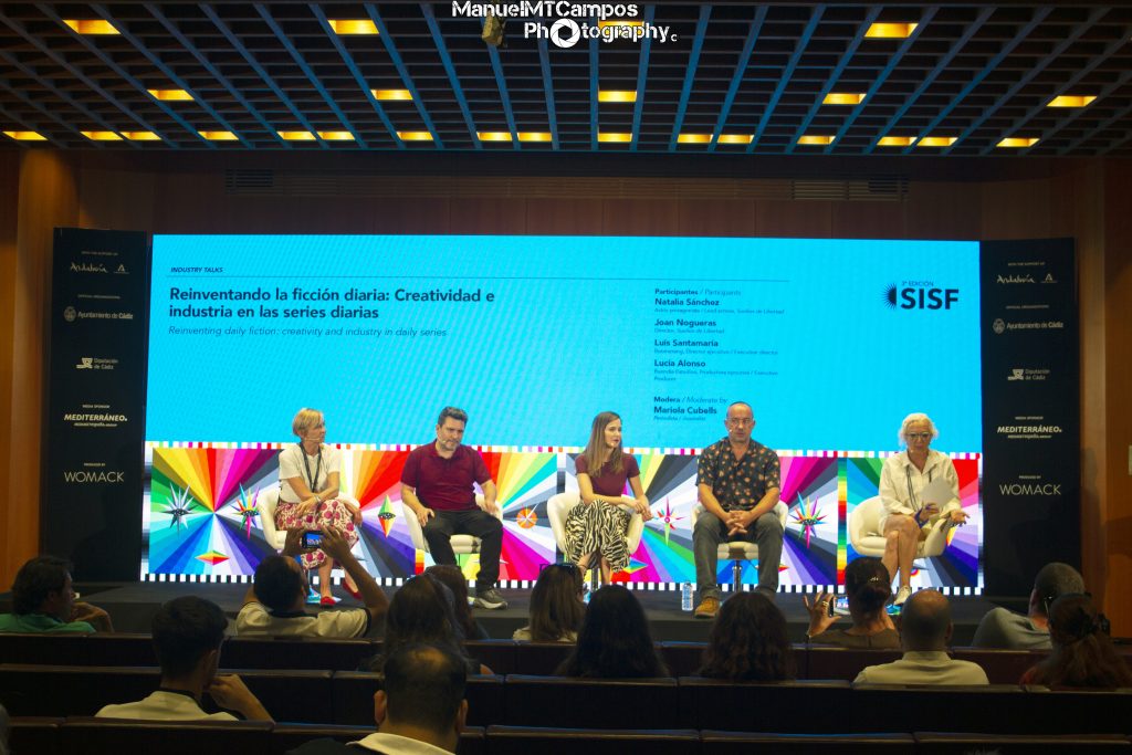 La mesa redonda “Reinventando la ficción diaria: Creatividad e industria en las series diarias” reunió a Natalia Sánchez, Joan Nogueras, Luis Santamaría y Lucía Alonso, con la moderación de la periodista Mariola Cubells, para analizar la transformación de este formato clave en la televisión.