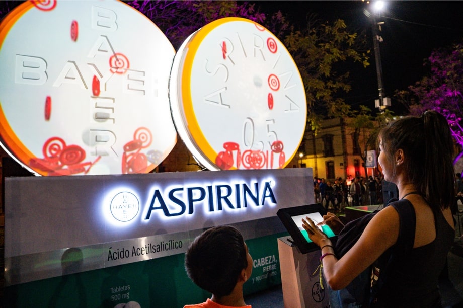 Otro de los puntos fuertes del show fue una instalación en la que los usuarios interactuaban con un video mapping, para la cual se usó un proyector Christie Crimson WU25 de tecnología 3DLP láser, resolución WUXGA y 25.000 lúmenes centro. “En este caso, optamos por esta máquina por su nitidez y por el tipo de tiro corto”, asegura Márquez. “Y es que una característica que fue muy importante para lograr este proyecto interactivo fue que el proyector permite reducir el área de proyección de forma dinámica. Con esta característica pudimos concentrar la proyección en un espacio muy corto”.