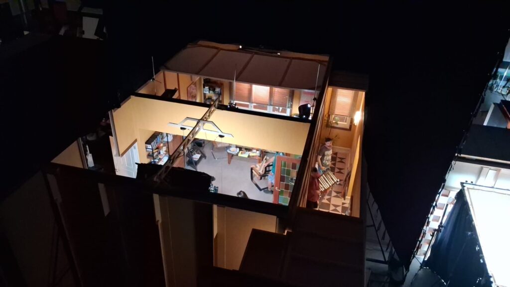Estuvimos en el Parc de Terrassa donde se ha recreado un auténtico y fantástico “pisito” donde se llevan a cabo los interiores. Ahí, a partir del sistema de railes de las paredes pueden correr a conveniencia para facilitar los tiros de cámara ganando profundidad en el espacio… El director, Oriol, se mostraba satisfecho del resultado conseguido, “con muchas ganas de llegar a la postproducción” como nos decía… También buena parte de su satisfacción tiene que ver con la propia fórmula de producción que se ha escogido: Un sistema que permite trabajar con el presupuesto adecuado para dar mayor factura al resultado final y que permite ensayar las situaciones y no ir con premuras de tiempo que desajusten el resultado..